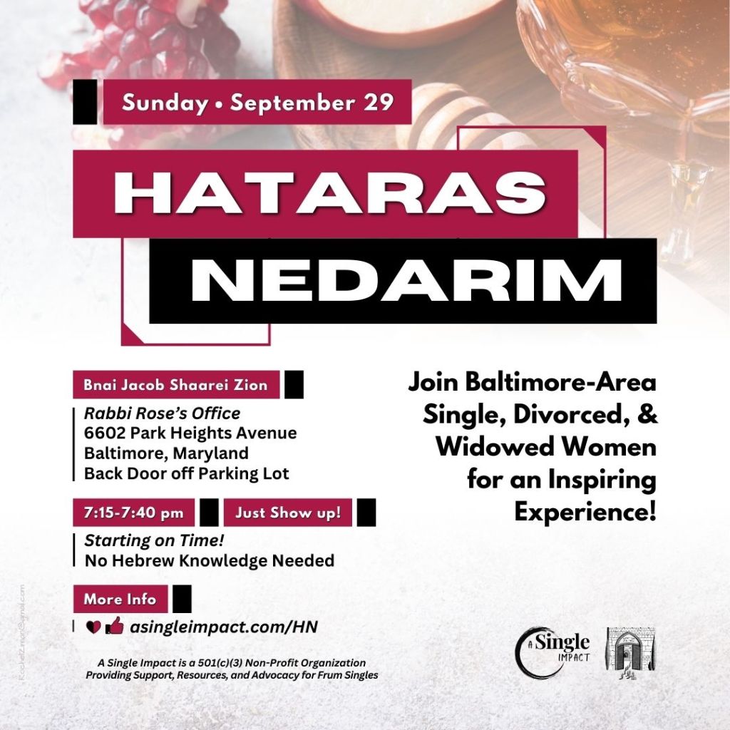 A Single Impact invites single, divorced, and widowed women to our yearly Hataras Nedarim.