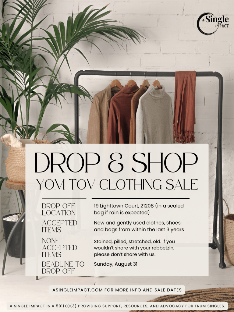 If you wouldn’t feel comfortable lending it to your rebbetzin, please find a new home for it elsewhere. We spend many hours sorting through clothing we are unable to sell and then must find alternative methods of disposal.